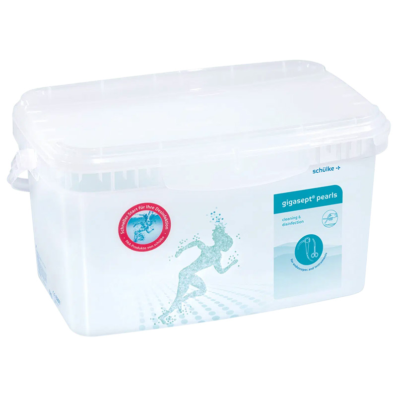 Zur manuellen prophylaktischen oder Abschluss-Desinfektion sowie Reinigung von nicht invasiven und invasiven Instrumenten (thermostabil, thermolabil) sowie aufbereitbaren Medizinprodukten im Tauchbad-Verfahren. Sehr gut geeignet zur Aufbereitung von flexiblen Endoskopen und empfindlichen Materialien wie Silikon, Polycarbonat, Polysulfon, Acrylglas. Durch den Zusatz spezieller Hilfsstoffe wird der pH-Wert von gigasept® pearls in einen neutralen Bereich gepuffert. Hierdurch wird eine Eiweißkoagulation (Fixierung von Eiweißen an Oberflächen) vermieden und zudem eine optimale Materialverträglichkeit erreicht. Neben der manuellen Aufbereitung sind die gigasept® pearls auch für den Einsatz im Ultraschallbad geeignet.
