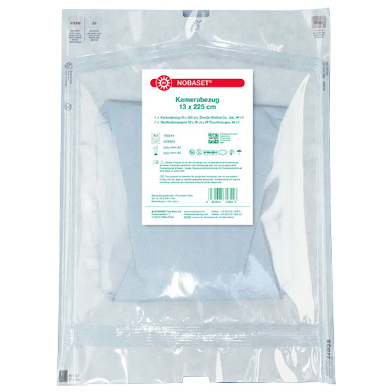NOBASET® Kamerabezug enthält eine sterile Geräteabdeckung aus transparenter Folie und eine Schutzunterlage. Das Material des Kamerabezugs sorgt für klare Sicht, ist stabil, flexibel und reißfest. Der Kamerabezug wird zum Schutz des Instrumentariums auf die Kamera gezogen und ist für den einmaligen Gebrauch bestimmt.
